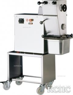 Ломтерезка Koneteollisuus Oy (KT) F-S19-9 ( под заказ 60 дней) Цена- по запросу используется на предприятиях пищевой промышленности и торговли для нарезки бескостного мяса на тонкие слои и ломтики, а так же для нарезки печени, филе домашней птицы, филе некоторых видов рыбы, плотных по консистенции овощей и фруктов. Модель оснащена емкостью для сбора обработанного продукта, температурным предохранителем, реле автоматического отключения двигателя и реверсивным переключателем. Корпус выполнен из нержавеющей стали. 380В, 1,5кВт, максимальная загрузка 1,5 кг, длина ножей 9 мм, производительность: 500 кг/час - ломтики, 1500 кг/час- слои, габариты: 500*770*710 мм, подставка 400*700*515 мм